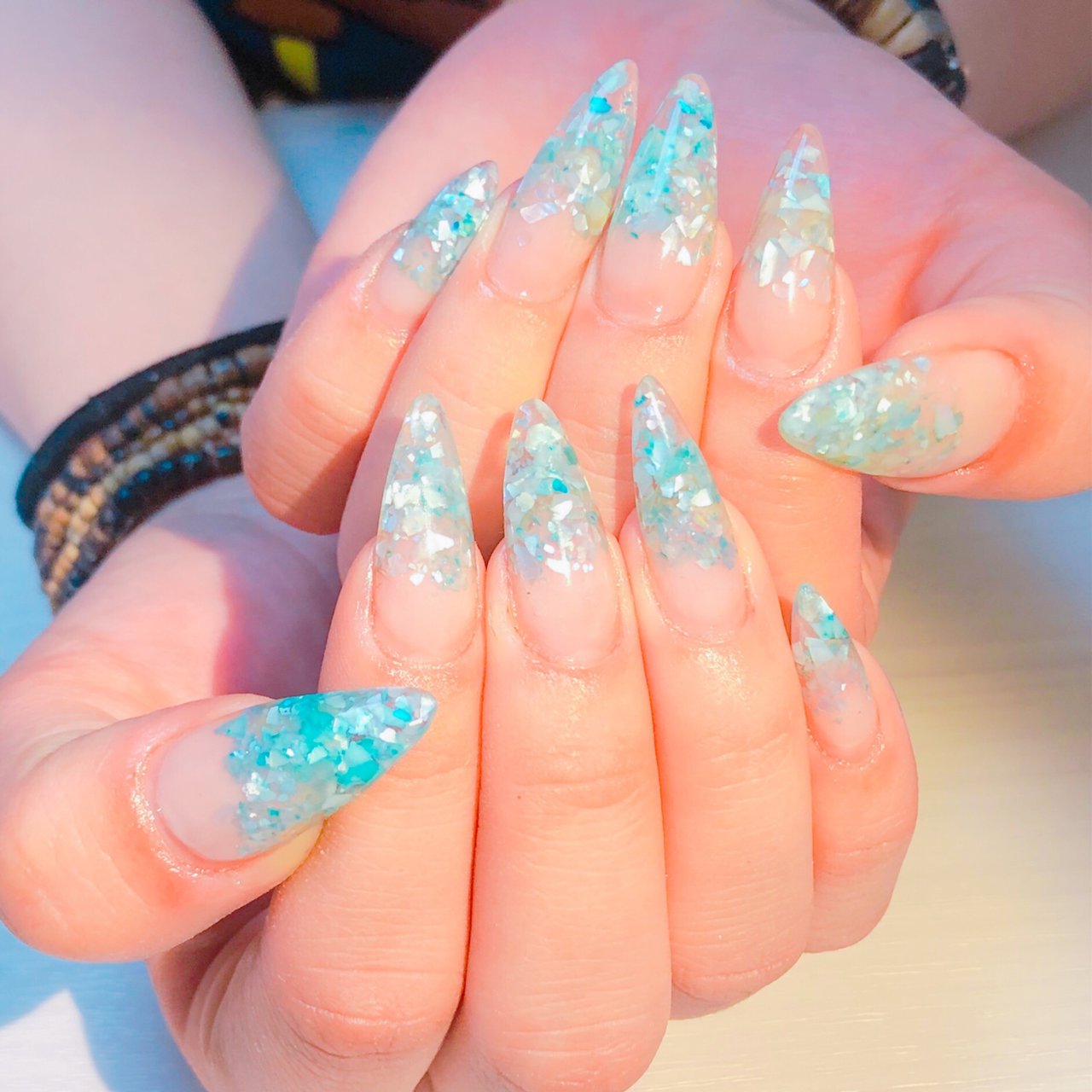 夏 ハンド シェル ロング 水色 みゆのネイルデザイン No ネイルブック